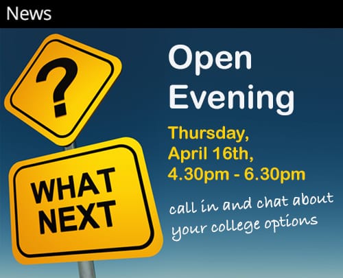 If you missed our Open Day in January, here is another chance to visit the college and find out about all the courses we have on offer. It’s an opportunity to talk to course coordinators, teachers and our guidance counsellors about what career path best suits you after leaving school or returning to up-skill or retrain.